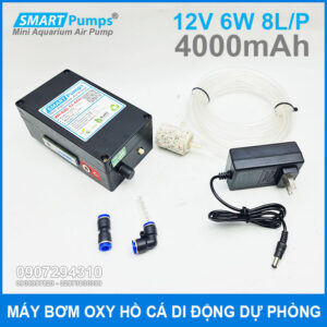 Máy bơm oxy mini dự phòng di động 12V 6W 8L 4Ah Smartpumps